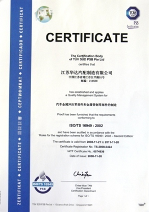 華達(dá)汽車科技股份有限公司總部位于江蘇靖江市,創(chuàng)辦于2002年,是上海大眾、一汽大眾、上海通用、東風(fēng)本田、廣州本田、武漢本田、廣汽豐田、東風(fēng)日產(chǎn)、奇瑞汽車、東風(fēng)悅達(dá)等知名汽車制造廠的A級配套企業(yè)。公司在廣州、長春、武漢、成都和海寧分別設(shè)立五個子公司。公司主要生產(chǎn)各類轎車“金屬管制件、大型沖壓拉伸件、隔熱板系列、焊接總成件”計2000多個品種及“模具、檢具、焊接夾具”等工裝制造產(chǎn)品。擁有各類先進(jìn)設(shè)備及五條自動沖壓生產(chǎn)線、一條金屬管制件生產(chǎn)線、> 瀏覽詳細(xì)