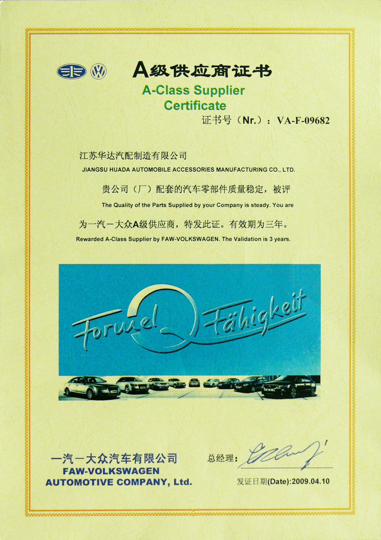 A級供應(yīng)商證書發(fā)布時間:2013-5-11 17:14:09