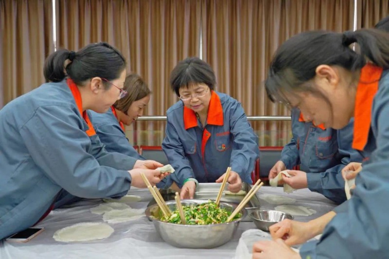 在采購價格總監(jiān)陳衛(wèi)組織下,大家齊聚一堂,一起包春卷,共迎三八婦女節(jié)。大家有的拌餡,有的剝春卷皮,有的包春卷,現(xiàn)場一片其樂融融的景家。大家忙得不亦樂乎,像一家人一樣其樂融融。