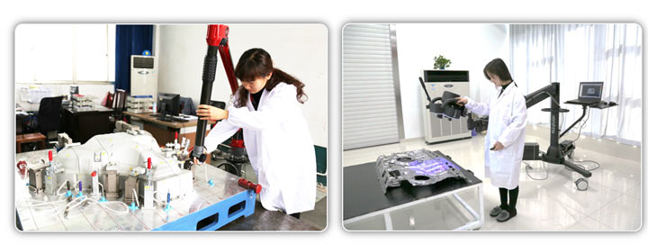藍(lán)光掃描(左:關(guān)節(jié)臂檢測 右:藍(lán)光掃描)